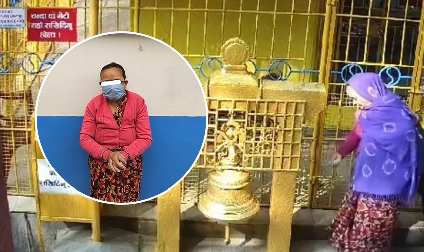काठमाडौं । काठमाडौँको नागार्जुन नगरपालिका–५ मा रहेको आदेश्वर मन्दिरमा पिसाब छर्केको आरोपमा प्रहरीले एक जना महिलालाई पक्राउ गरेको छ । पक्राउ पर्नेमा काठमाडौँ महानगरपालिका–१७ धोवीचौर घर भई हाल सुकेधारा बस्ने ६१ वर्षीया मिठु तिवारी गर्तौला रहेकी छन् ।