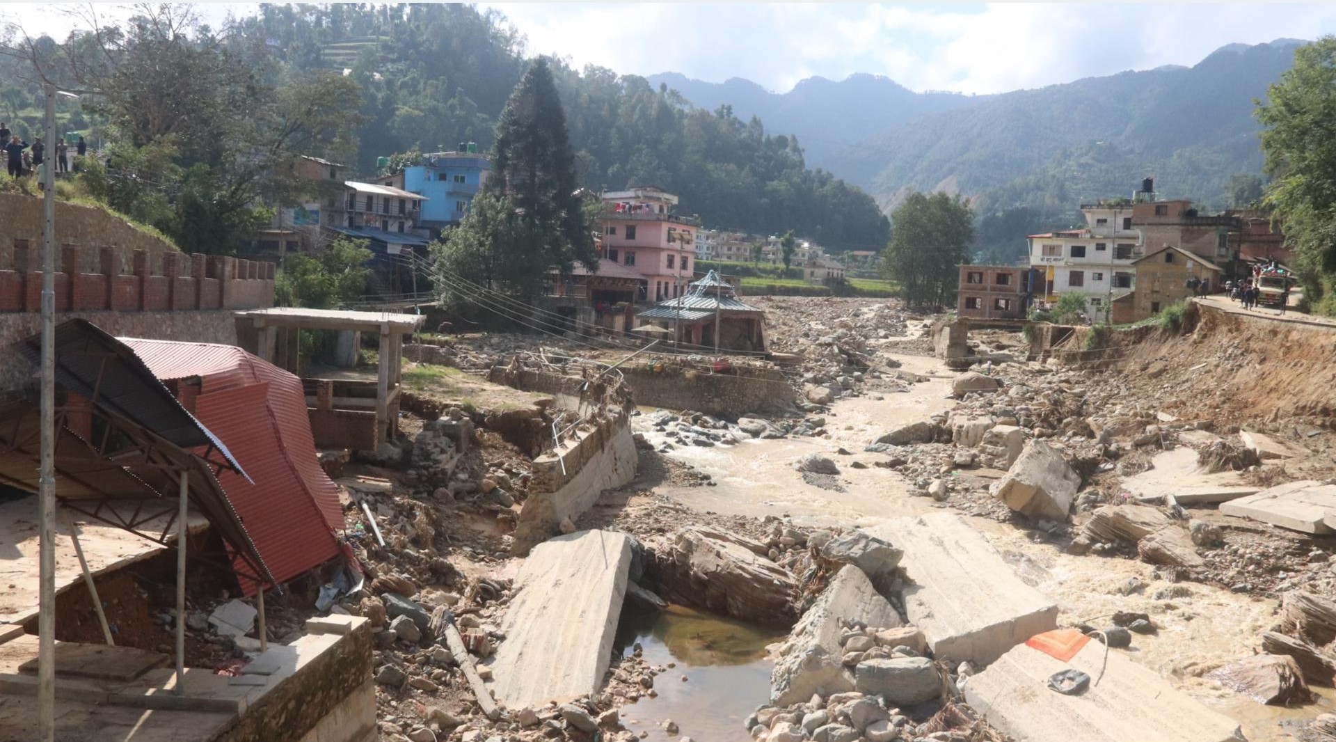 उपत्यकाका नदी आसापासका करिडोरहरू अझै धुलाम्मे छन्, कुरुप छन् अझै । सहरी विकास मन्त्रालयका अनुसार बाढीपहिरोजस्ता प्राकृतिक विपद्का कारण सहरी विकास मन्त्रालयअन्तर्गत क्षतिग्रस्त पूर्वाधारका संरचना बनाउन करिब रु दुई अर्ब ८८ करोड ३४ लाख लागत लाग्ने गरिएको छ । स्थानीय पूर्वाधार विभागअन्तर्गत २७ वटा सडकखण्ड र २८ ओटा झोलुङ्गे पुलमा आंशिक रुपमा क्षति र ३२ वटा झोलुङ्गे पुलमा पूर्ण रूपमा क्षति पुगेको छ ।