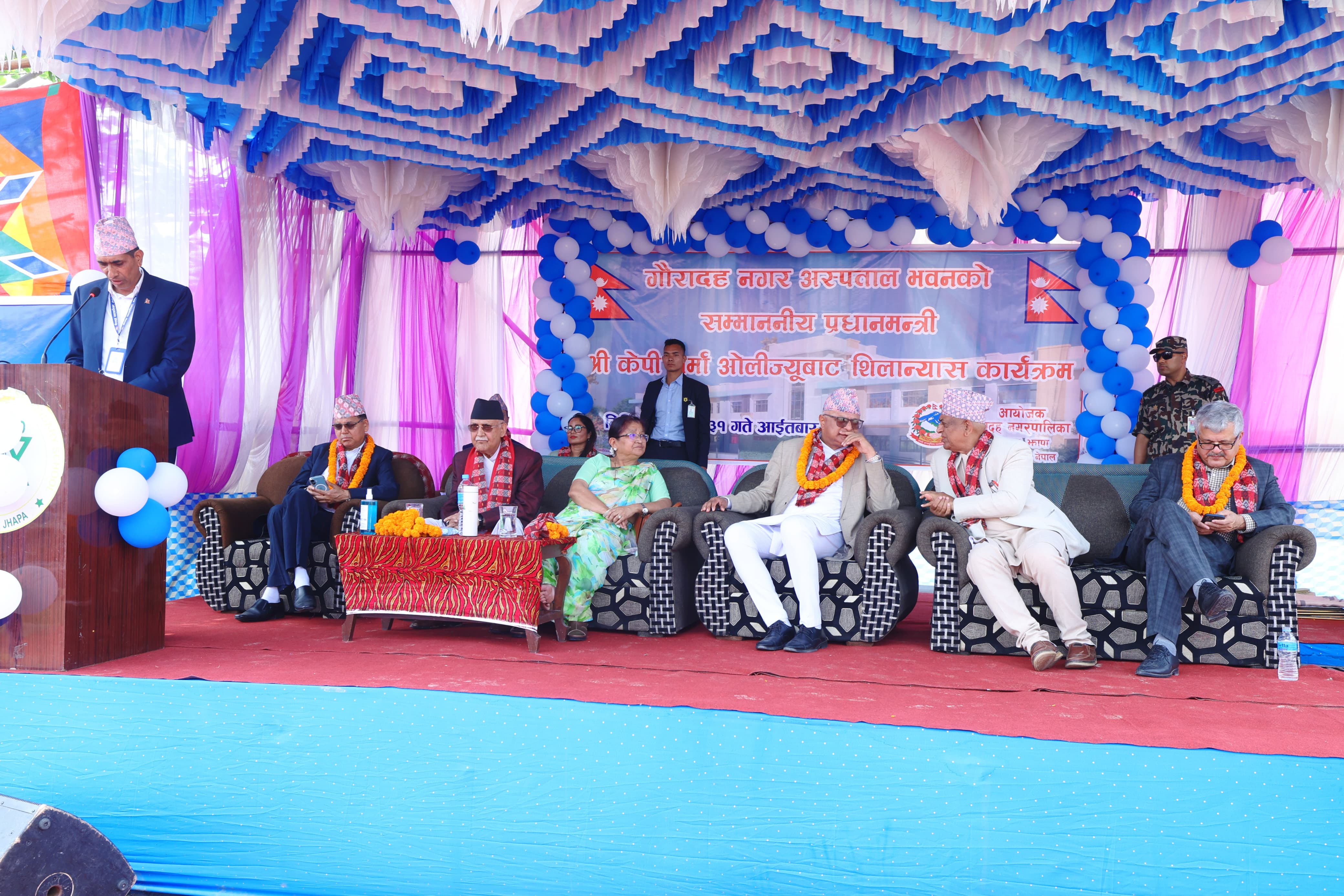 प्रधानमन्त्री ओलीको अघिल्लो कार्यकालमा २०७५ सालमा सबै स्थानीय तहमा १५ शैयाको आधारभूत अस्पताल निर्माण गर्ने घोषणा भएकोमा जग्गा प्राप्तिमा ढिलाइका कारण गौरादहमा अस्पताल निर्माण सुरु हुन सकेको थिएन ।