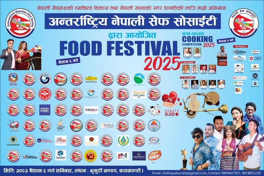 नेपाली सेफहरूको व्यक्तित्व विकास तथा नेपाली खानाको स्तरोन्नतिका लागि भन्दै सोसाइटीले वैशाख ६ गते भृकुटीमण्डपमा फुट फेस्टिभल गर्न लागिरहेको छ ।