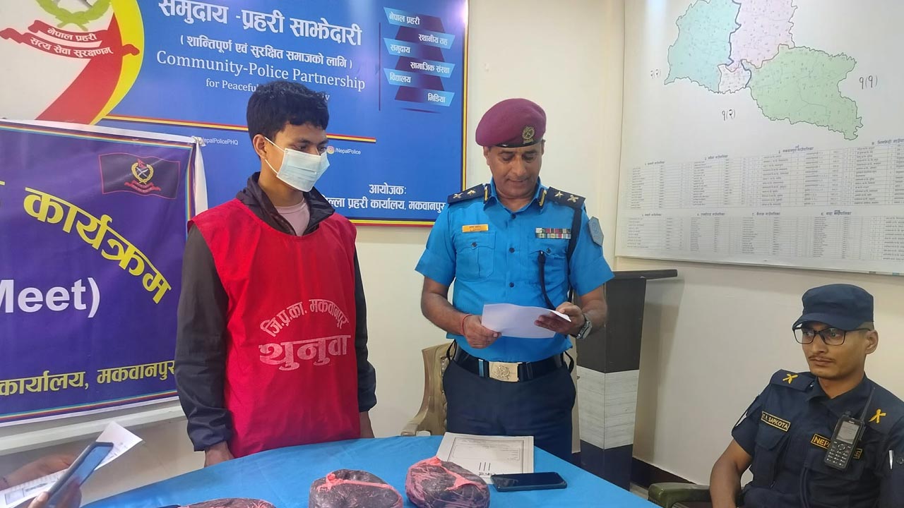 प्रहरीले ५ किलो ९४० ग्राम अफिमसहित चितवन जिल्लाको राप्ती नगरपालिका– ११ का २५ वर्षीय बाबुराम तामाङलाई पक्राउ गरेको हो । तामाङलाई इलाका प्रहरी कार्यालय नेवारपानी मकवानपुरबाट खटिएको प्रहरी टोलीले आइतबार बिहान करिब ७ बजे पूर्व–पश्चिम राजमार्गअन्तर्गत हेटौँडा उपमहानगरपालिका– १९ नेवारपानीबाट नियन्त्रणमा लिएको हो ।