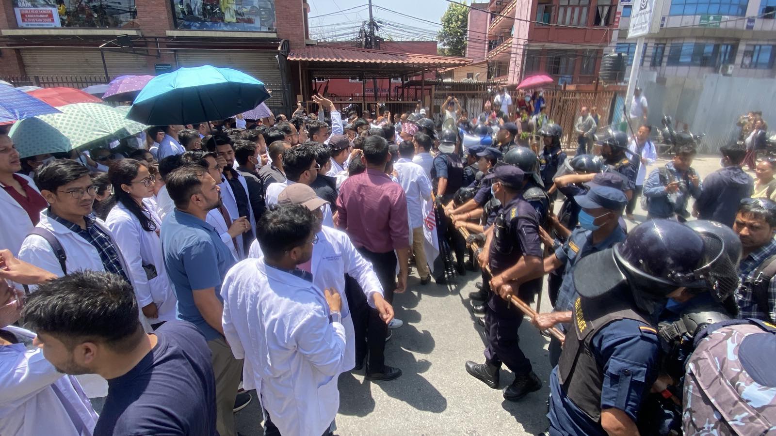 विगत २९ दिनदेखि आन्दोलन गर्दै आइरहेका उनीहरु आज स्वास्थ्य मन्त्रालय जान लागेका थिए। तर प्रहरीले भने उनीहरुलाई रोकेको छ।