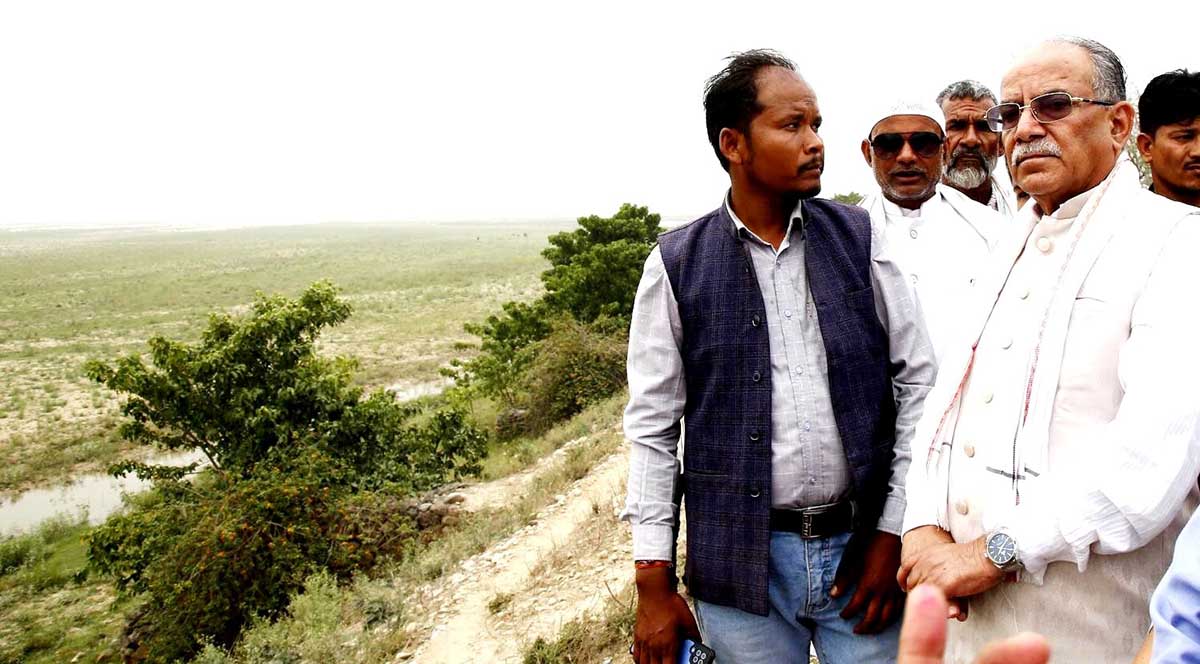 कटान तथा तटबन्धको निरीक्षण गर्दै अध्यक्ष प्रचण्डले तत्काल तटबन्धको काम पूरा गरेर सो क्षेत्रका जनतालाई डुबान र कटानको त्रासबाट जोगाउन निर्देशन दिएको छन् ।