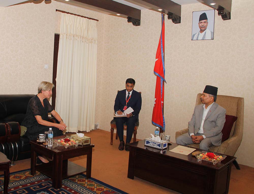 काठमाडौं । उपराष्ट्रपति रामसहायप्रसाद यादवसँग नेपालका लागि युरोपेली सङ्घका राजदूत भेरोनिक लोरेन्जोले शिष्टाचार भेटवार्ता गरेका छन् । काठमाडौँ लैनचौरस्थित उपराष्ट्रपतिको कार्यालयमा आज भएको भेटमा द्विपक्षीय सम्बन्धको विविध आयामबारे संवाद भएको उपराष्ट्रपतिको कार्यालयले जनाएको छ ।