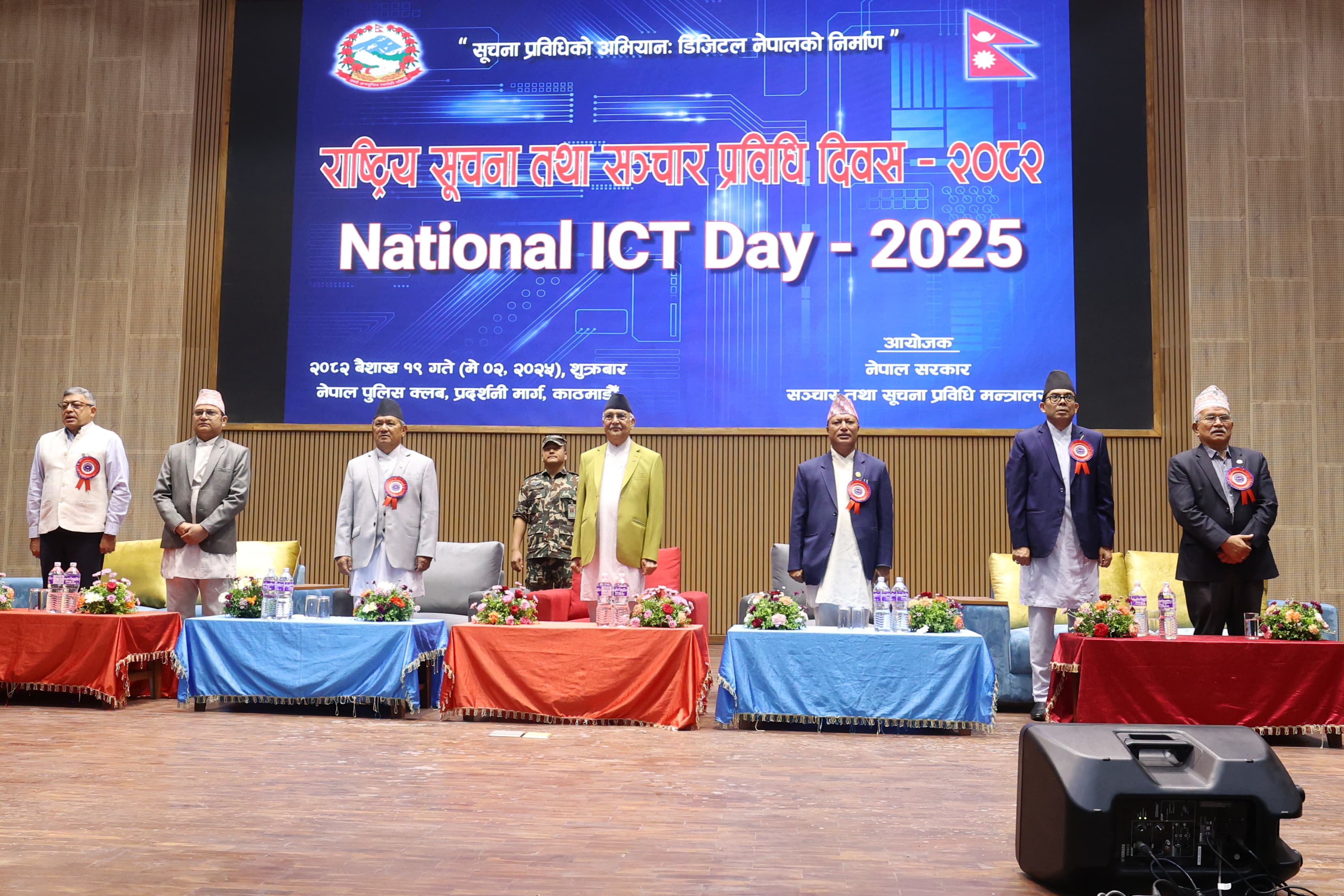 राष्ट्रिय सूचना तथा सञ्चार प्रविधि दिवस, २०८२ का अवसरमा आज सूचना तथा सञ्चार प्रविधि मन्त्रालयद्वारा आयोजित कार्यक्रममा प्रधानमन्त्री ओलीले नेपाललाई आधुनिक र प्रविधिमय बनाउन हरेक दिन एक पाइला अगाडि भन्ने सोचका साथ काम गर्न आग्रह गरेका हुन ।