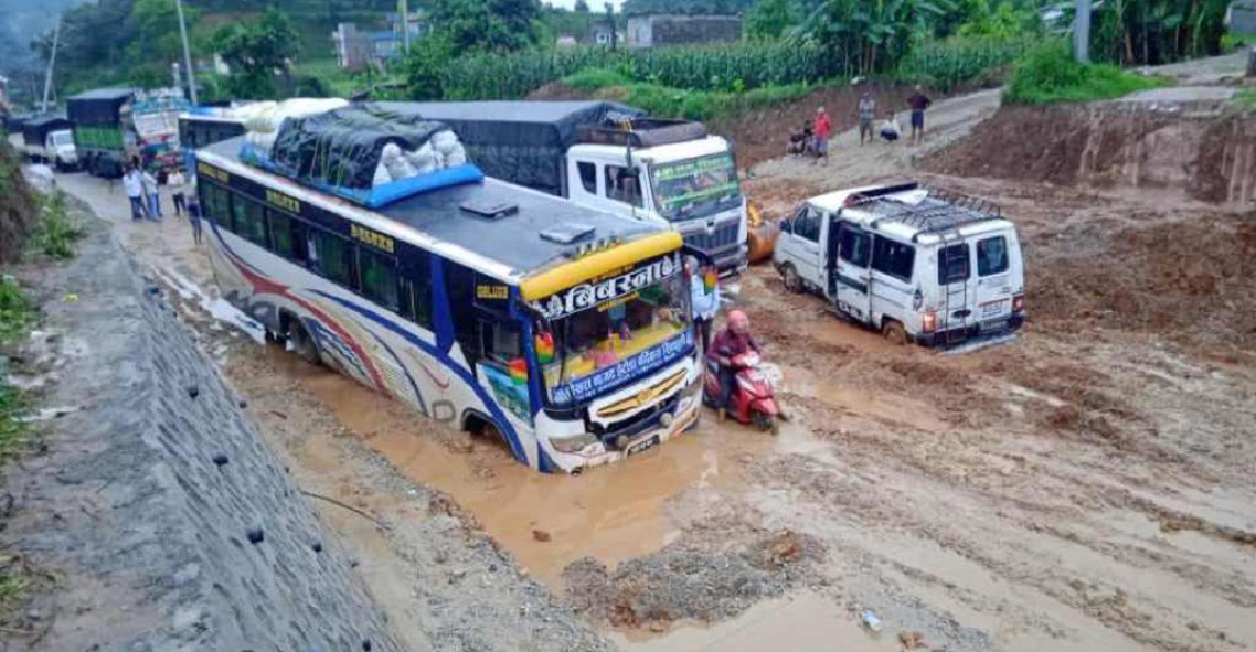भक्तपुर । गएरातिदेखिको वर्षाले अरनिको राजमार्गअन्तर्गत भक्तपुरको सूर्यविनायक–जगाति सडकमा आवत जावत गर्न समस्या भएको छ ।