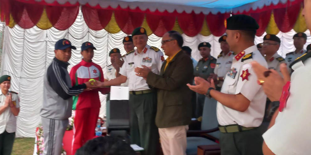 काठमाडौँ । यस वर्षको ‘प्रधानसेनापति राष्ट्रिय टेनिस प्रतियोगिता २०८२’ आजदेखि सुरु भएको छ । सैनिक मुख्यालय जङ्गीअड्डा परिसरमा सञ्चालन हुने प्रतियोगिताको बलाधिकृत रथी निर्मलकुमार थापाले निर्णायकलाई बल हस्तान्तरण गरी शुभारम्भ गरे।