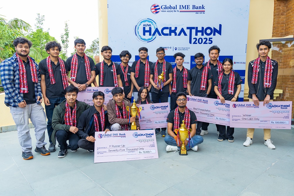 काठमाडौं । ग्लोबल आइएमई बैंक लिमिटेडको आर्टिफिसिएल इन्टेलिजेन्स (एआई) र मेसिन लर्निङ (एमएल) सम्बन्धी “ग्लोबल आइएमई एआई÷एमएल ह्याकाथन” कार्यक्रम सम्पन्न भएको छ । नेपाल राष्ट्र बैंकका डेपुटी गभर्नर बम बहादुर मिश्रको प्रमुख आतिथ्यतामा ह्याकाथन कार्यक्रम सम्पन्न भएको हो ।