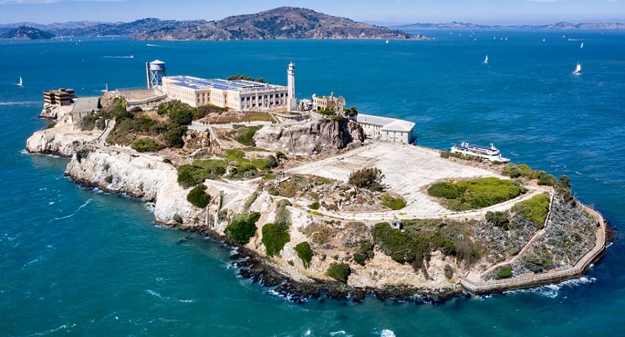 सान फ्रान्सिस्को तटबाट दुई किलोमिटर दूरीमा अवस्थित र मात्र तीन सय ३६ कैदीको क्षमता भएको यो कारागारमा निषेध युगका माफिया नेता अल कापोन जस्ता केही प्रख्यात अपराधीहरू राखिएका थिए र यसले कैदीहरूले धेरै काल्पनिक भाग्ने प्रयासहरू देखेको थियो ।