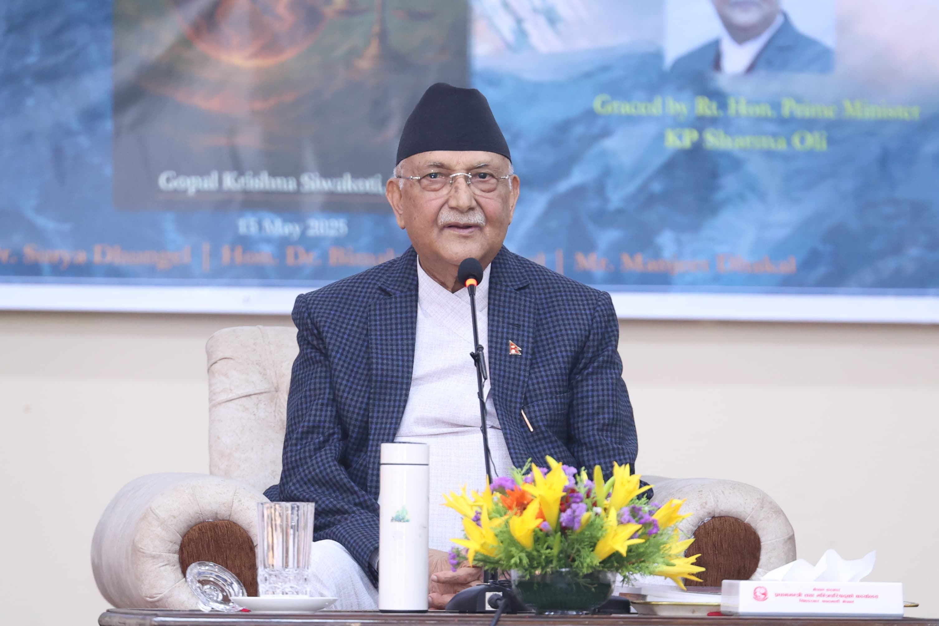 सगरमाथा संवादको पूर्वसन्ध्यामा डा गोपालकृष्ण शिवाकोटीद्वारा लिखित ‘क्याइमेट कालामिटीः जष्टिस फर लस एण्ड ड्यामेज’ पुस्तकको आज लोकार्पण गर्दै प्रधानमन्त्री ओलीले हाम्रा भविष्यका सन्तती सुरक्षित र सम्मानति होउन् भनेर काम गर्नुपर्नेमा जोड दिएका हुन् ।
