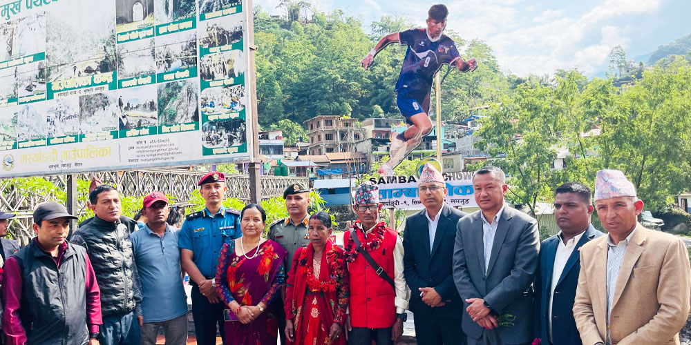 लमजुङ। चर्चित फुटबलर सावित्रा भण्डारीको सम्मानमा मस्र्याङदी गाउँपालिका–९ सिम्पानी खुदीपुल नजिक ‘साम्बा’ चोक स्थापना गरिएको छ । मस्र्याङ्दी गाउँपालिका–९ पामचोकमा जन्मेकी फुटबलर सावित्रा भण्डारीको सम्मानमा स्थापना गरिएको चोकमा साम्बाको स्क्याचुसहित स्तम्भ निर्माण गरिएको हो ।