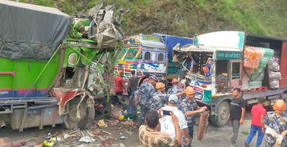 घाइते हुनेहरुमा प्रदेश ०१–००६ ख ६२८७ नम्बरको ट्रकका चालक भरतपुर–१२ मुनालचोक बस्ने ३७ वर्षका सन्तोष सुवेदी र ना ६ ख ९८९७ नम्बरको ट्रकका चालक रौतहट गरुड नगरपालिका ५ बस्ने ३४ वर्षका धनराज कुमार यादव हुनुहुन्छ ।