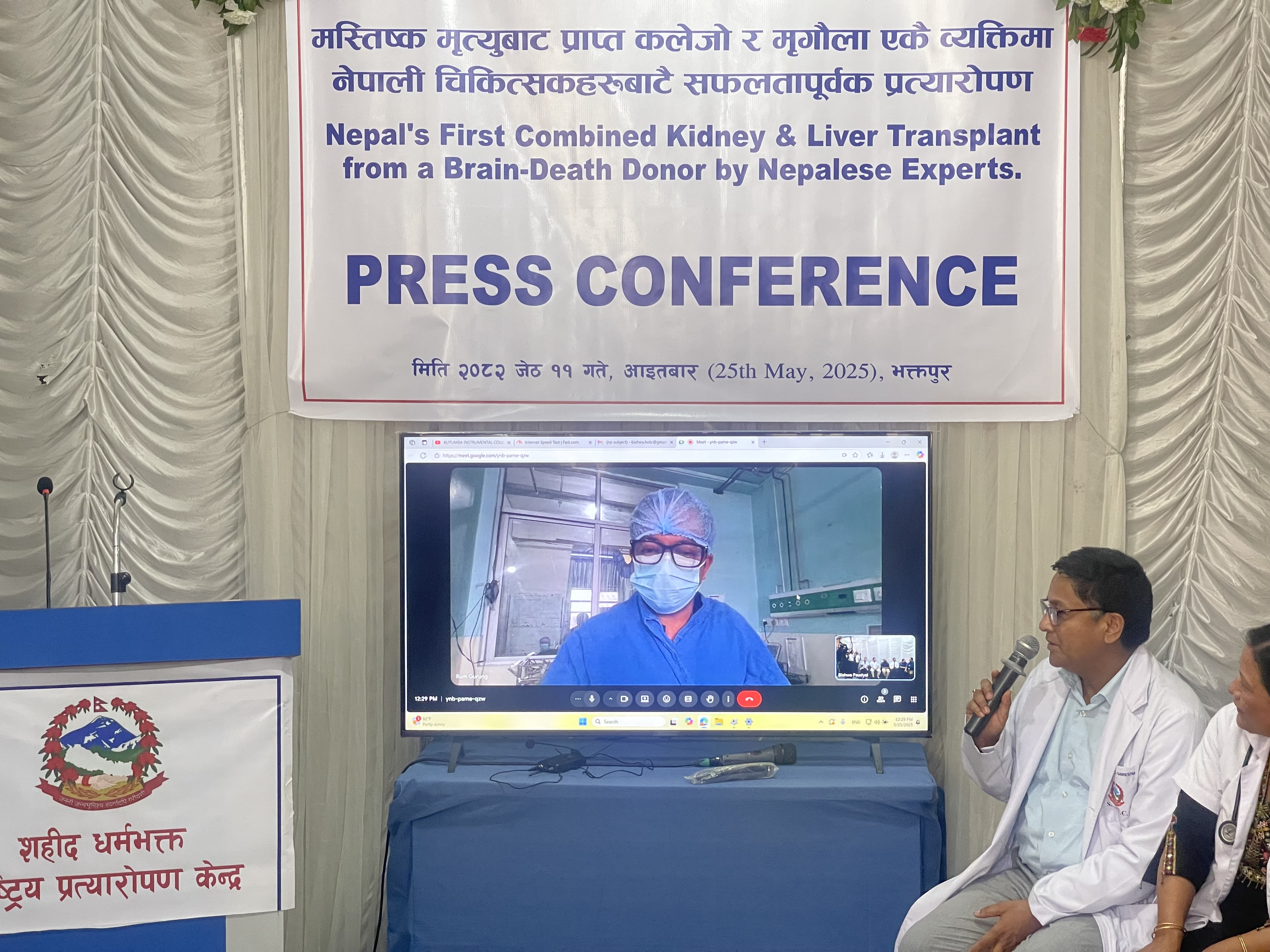 भक्तपुरस्थित धर्मभक्त राष्ट्रिय प्रत्यारोपण केन्द्रले मस्तिष्क मृत्यु (ब्रेन डेथ) भएका एकै व्यक्तिको कलेजो र मिर्गौला दुई जनामा प्रत्यारोपण गरेको हो।