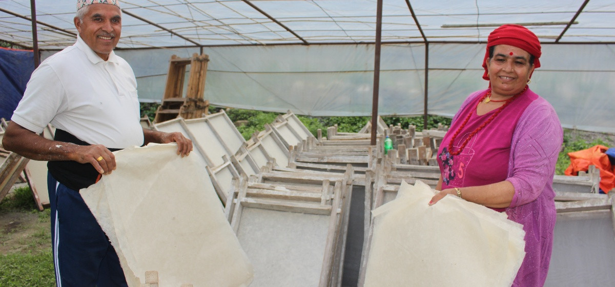म्याग्दी । म्याग्दीको मालिका गाउँपालिका–६ दरबाङका सेवानिवृत्त शिक्षक मोतिराज गौतमले हाते कागज उद्योग सञ्चालन गरेका छन्। ४१ वर्षको शिक्षण पेसाबाट अवकाश लिएपछि गौतमले मालिका गाउँपालिका–५ थापाचौरमा जग्गा भाडामा लिएर ‘मालिका कागज उद्योग’ सुरु गरेका हुन्।