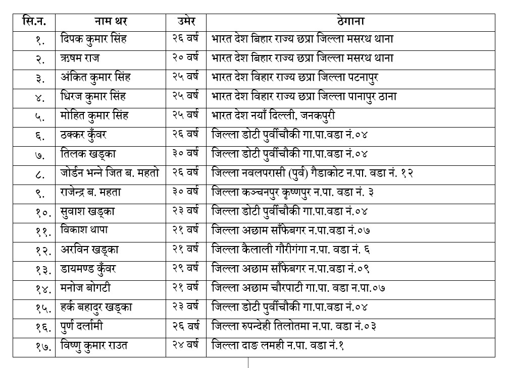 काठमाडौं । विभिन्न देशका नागरिकहरूलाई ह्वाटसप र इन्स्टाग्राम मार्फत सम्पर्कमा ल्याई अनलाइन डेटिङ साइटको प्रयोग गरी हारजित हुने तवरले व्यावसायिक रूपमा अनलाइन जुवा (सट्टाबाजी) खेल्ने र खेलाउने कार्यमा संलग्न १७ जनालाई काठमाडौँ उपत्यका अपराध अनुसन्धान कार्यालयको प्रहरी टोलीले पक्राउ गरेको छ ।