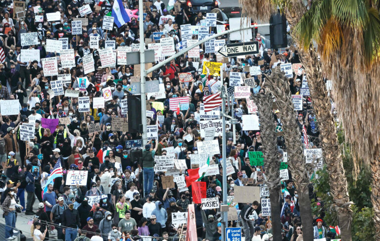 देशमा अवैध रूपमा आप्रवासीहरूलाई समात्ने प्रयासमा अचानक वृद्धि भएपछि प्रायः शान्तिपूर्ण विरोध प्रदर्शनहरू भड्किए ।