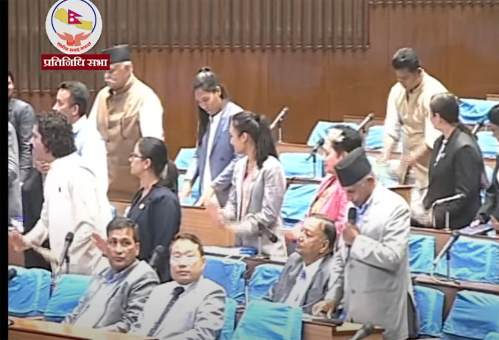 काठमाडौँ । प्रतिनिधिसा बैठकमा राष्ट्रिय स्वतन्त्र पार्टी र राष्ट्रिय प्रजातन्त्र पार्टीका सांसदहरूले उठेर टेबुल ढ्यापढ्याप पारिरहेका छन् । त्यही ढ्यापढ्यापबीचम प्रमुख प्रतिपक्षी दल नेकपा (माओवादी केन्द्र) का प्रमुख सचेतक हितराज पाण्डेले धारणा राखिरहेका छन् ।
