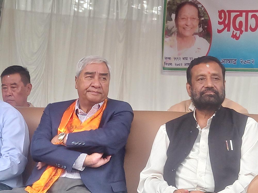 समाजसेवी तथा कांग्रेस नेतृ गौरीदेवी प्रधानको शुक्रबार सातौँ पुण्य तिथिका अवसरमा आयोजित श्रद्धाञ्जली सभामा बोल्दै सभापति देउवाले अन्य दलसँग सहकार्य नगरे बहुमत ल्याउने अवस्था नभएकै कारण वामपन्थी दलसँग सहकार्य गरिरहनु परेको बताएको हो ।