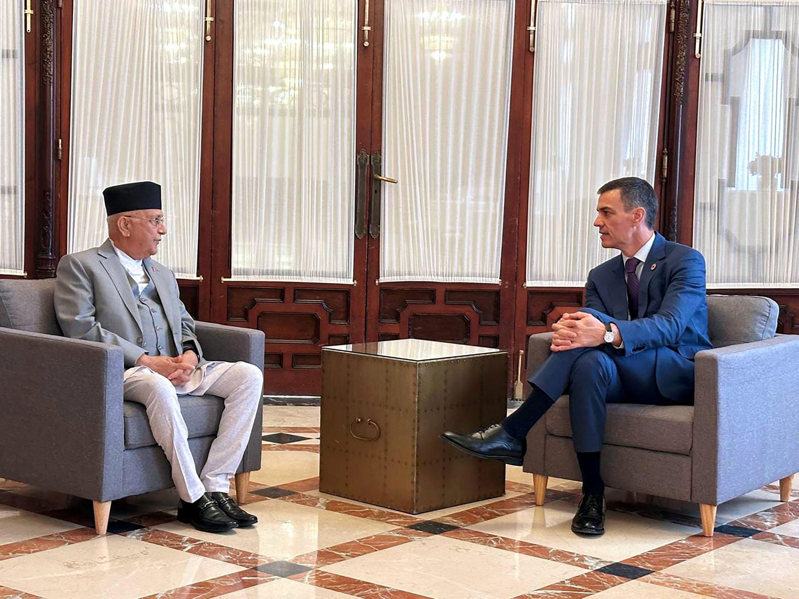 प्रधानमन्त्री ओलीले समकक्षी साञ्चेजलाई नेपालको औपचारिक भ्रमणको निमन्त्रण दिँदै नेपालका स्पेनको दूतावास खोल्न आग्रह गरेका थिए । स्पेनका प्रधानमन्त्री साञ्चेजले राष्ट्रसङ्घको शान्ति मिसनमा नेपालले खेल्दै आएको भूमिकाप्रति प्रशंसा गरे ।