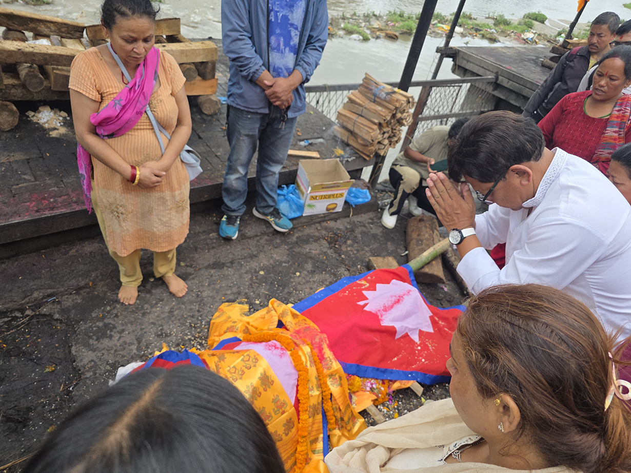 श्रेष्ठको आज बिहान पशुपति आर्यघाटमा दाहसंस्कार गरिएको छ । अन्त्येष्टिअघि उनको पार्थिव शरीरमा नेपालको झन्डा ओढाइएको थियो ।