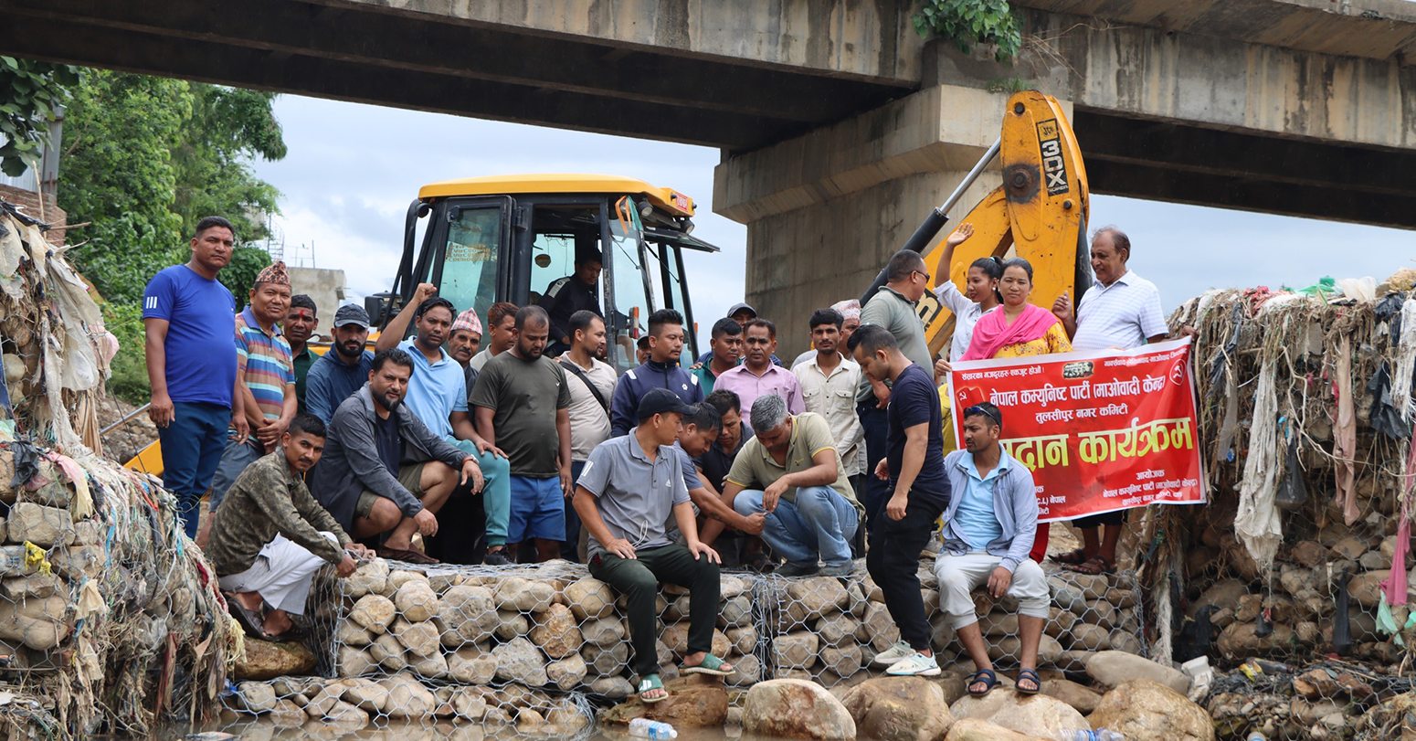 दाङ । दाङ–सुर्खेत सडक खण्ड अन्तर्गत दाङ तुलसीपुरको पातुखोला पुल जीर्ण हुन थालेपछि श्रमदान गरेर तटबन्ध गरिएको छ । शनिबार माओवादी केन्द्र तुलसीपुरले श्रमदान गरेर तटबन्ध निर्माण गरेको हो । जहाँ तटबन्ध नहुँदा पुल मुनीको भाग गहिरिएर गएको छ ।