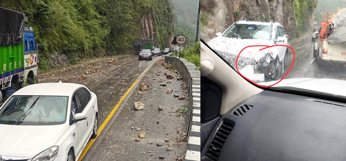 आइतबार दिउँसो ढुङ्गा खस्दा भारतीय नम्बर प्लेटको युपी ८० जिपी २९२८ नम्बरको कारमा सवार तीनजना घाइते भएका हुन्।