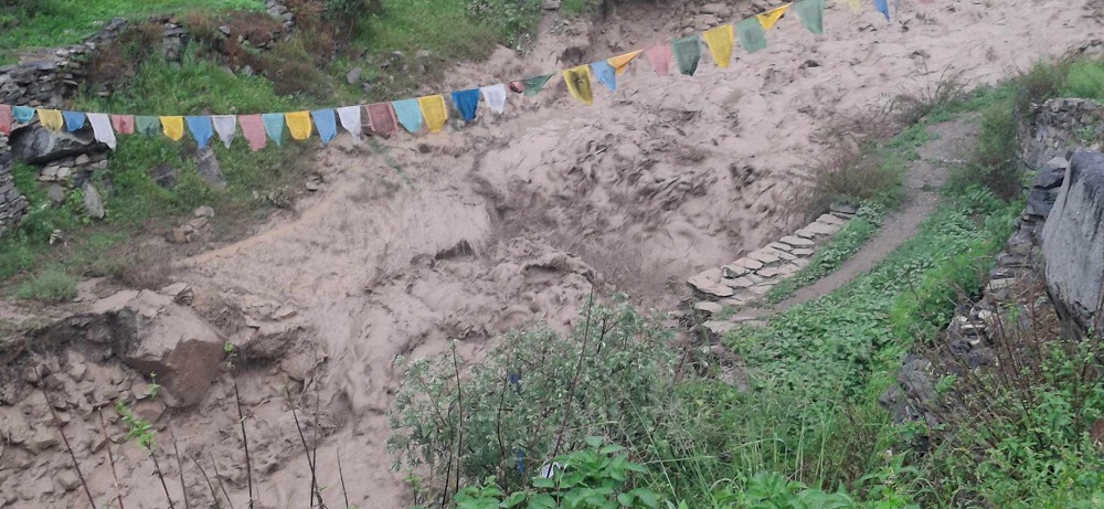 गाउँको पश्चिम दक्षिणतर्फ लेदोसहित आएको ठुलो पहिरोले हिल्सातर्फ जाने काठेपुल बगाएको वडाध्यक्ष पाल्जोर तामाङले बताए।