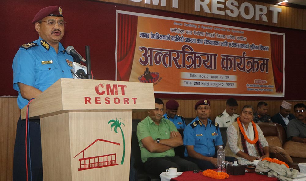 चितवन । नेपाल प्रहरीका प्रहरी महानिरीक्षक दीपक थापाले मानव बेचबिखन नियन्त्रणका लागि सरोकारवाला निकायबीचको साझेदारी अपरिहार्य रहेको बताएका छन् । मानव बेचबिखन तथा यौनजन्य हिंसाविरुद्धको साझा अभियान चितवनले आज भरतपुरमा ‘अन्तरराष्ट्रिय मानव बेचबिखनविरुद्धको दिवस’को सन्दर्भमा एक कार्यक्रम आयोजना गरेको थियो ।