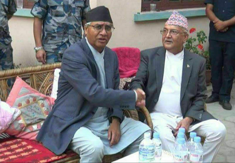 काठमाडौं । ‘मन्त्रिपरिषद् हेरफेर’ एजेन्डासहित प्रधानमन्त्री केपी शर्मा ओली र सत्तासाझेदार दल नेपाली कांग्रेसका सभापति शेरबहादुर देउवाबिच अहिले केही बेरमा छलफल हुँदै छ । धानमन्त्रीको प्रेसविज्ञ रामशरण बजगाईंका अनुसार दुई दलका शीर्ष नेताहरूको बैठक अहिले केहीबेरमा बालुवाटारमा बस्ने तय भएको हाे ।