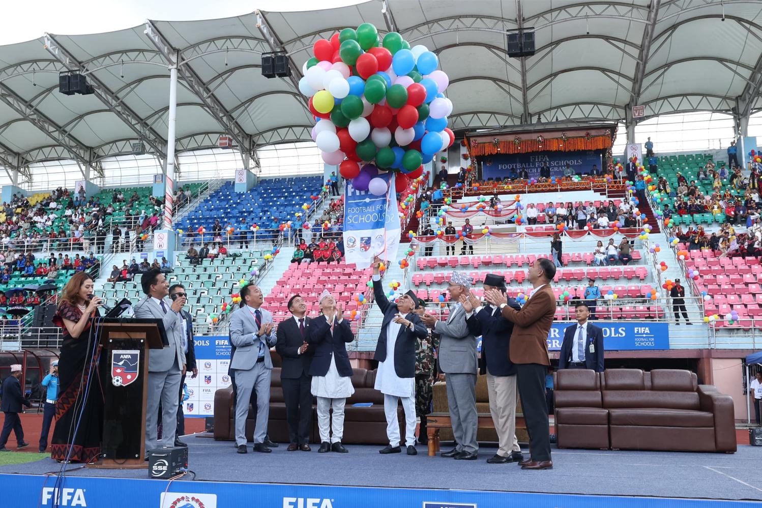 दशरथ रङ्गशालामा आयोजित विशेष कार्यक्रमबिच प्रधानमन्त्री ओलीले विश्व फुटबल महासङ्घ (फिफा)को सहयोगमा प्राप्त करिब एक हजार विद्यालयलाई निस्शुल्क फुटबल वितरण पनि गरे।