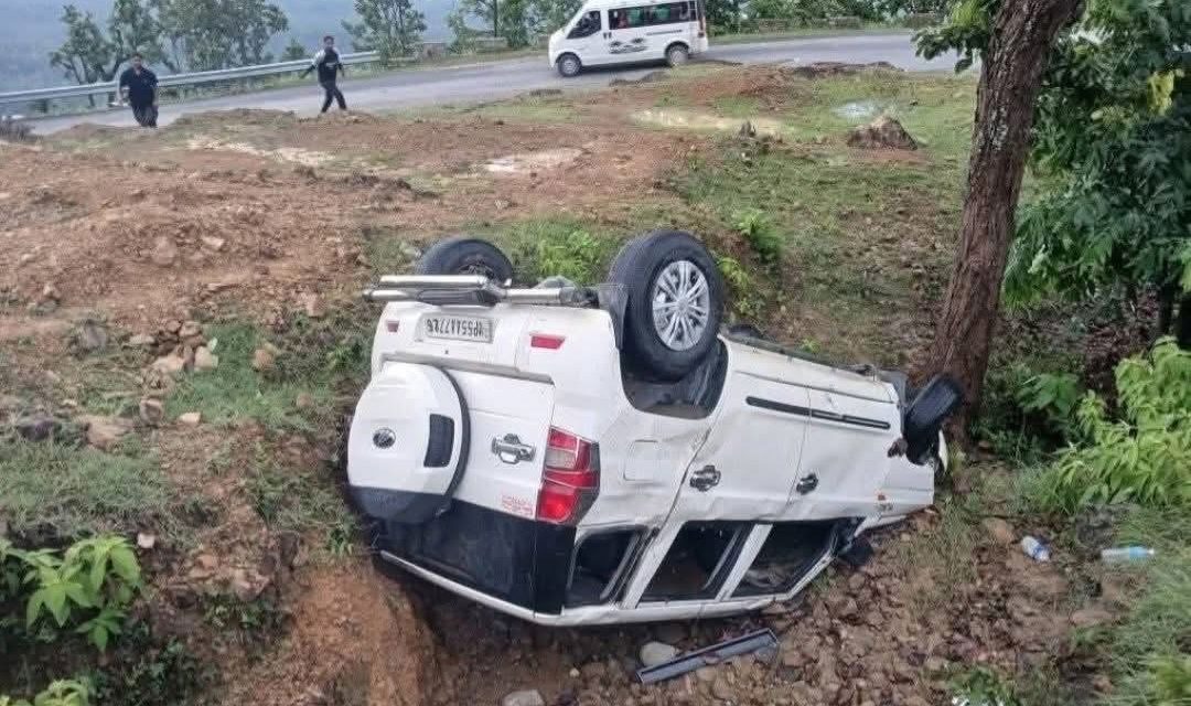 अगाडि रहेको अटोरिक्सालाई बचाउने क्रममा बस अनियन्त्रित भई विपरीत लेनमा पल्टिएको थियो । बस चालकलाई प्रहरीले नियन्त्रणमा लिएको छ ।
