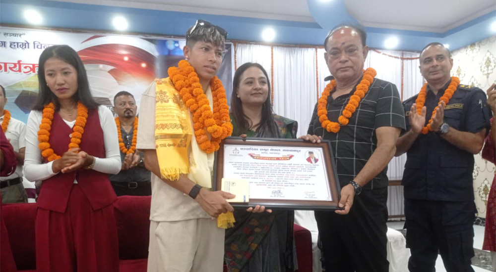 मकवानपुर। फुटबल खेलको माध्यमबाट नेपाललाई विश्वभर चिनाउने नेपाली महिला राष्ट्रिय फुटबल टोलीकी कप्तान सावित्रा भण्डारी ‘साम्बा’ लाई हेटौँडामा सम्मान गरिएको छ ।