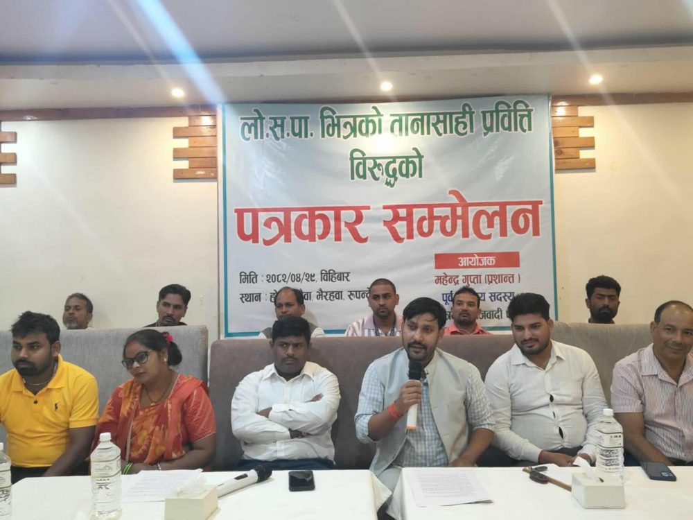 रुपन्देही । लोकतान्त्रिक समाजवादी पार्टी नेपालका पूर्व केन्द्रीय सदस्य तथा युवा नेता महेन्द्र गुप्ता (प्रशान्त) ले पार्टीभित्र लोकतन्त्र नरहेको बताएका छन् । उनले नाममा लोकतान्त्रिक भए पनि व्यवहारमा भने नभएको आरोप लगाएका हुन् ।