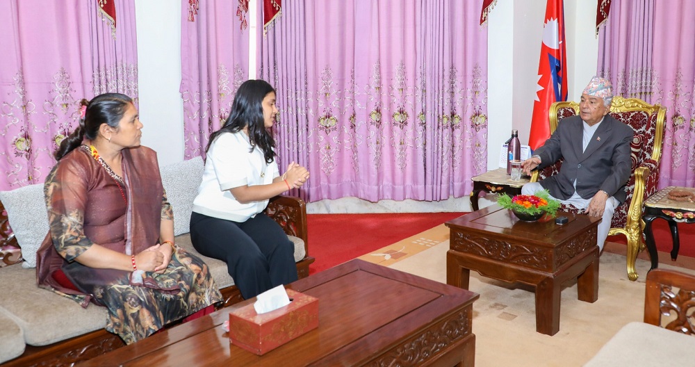 काठमाडौँ। राष्ट्रपति पौडेलसँग प्यालेस्टिनी समूह हमासले बन्धक बनाएका महेन्द्रनगरका विपिन जोशीका आमा र बहिनीले भेट गरेको छन् । इजरायलस्थित नेपाली दूतावासको समन्वयमा विपिनका आमा पद्मा र पुष्पा जोशीले इजरायल पुगेर राष्ट्रपति र प्रधानमन्त्रीलाई भेटेर फर्किको थिए।