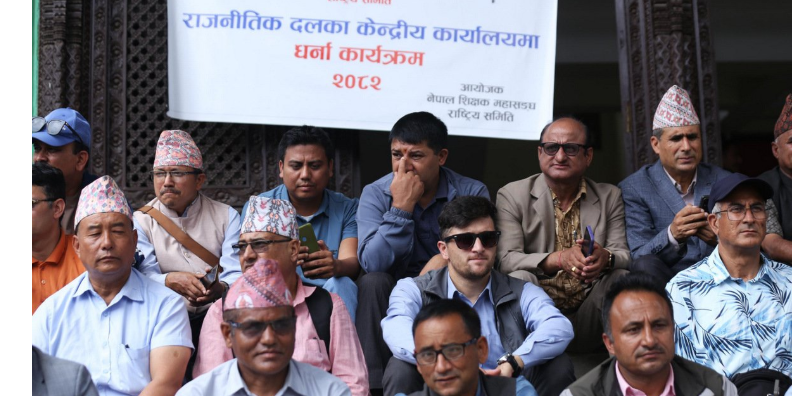 काठमाडौँ । नेपाल शिक्षक महासङ्घले नेपाली कांग्रेसको पार्टी कार्यालयमा धर्ना दिएका छन्।
