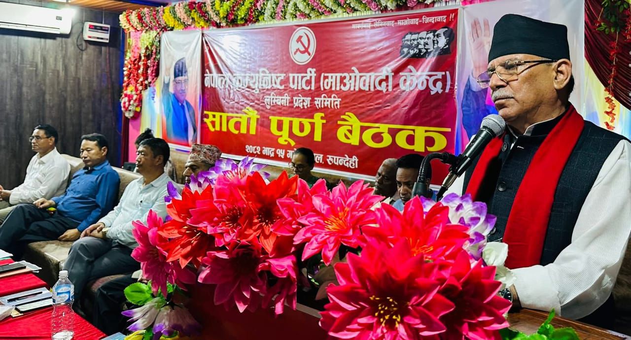 पार्टीको लुम्बिनी प्रदेशको सातौं पूर्ण बैठक बुटवलको वेलबासमा सम्पन्न बैठकलाई सम्बोधन गर्दै पार्टी अध्यक्ष प्रचण्डले रुपन्देहीमा एक्लै चुनाव लड्ने तयारी थाल्न नेताकार्यकर्तालाई निर्देशन दिए । अध्यक्ष प्रचण्डले भने “पछिल्लो समय म विभिन्न कार्यक्रममा बाहिर जाँदा कांग्रेस एमालेका नेताहरुले मलाई भेट्दा यो परिर्वतन माओवादीले ल्याएको हो । त्यसको रक्षा पनि माओवादीले नै गर्नुपर्छ भन्नुभएको छ । मैले यो कुरा मलाई किन भन्नुहुन्छ ? यो जनतालाई भन्नुहोस् न भन्ने गरेको छु । त्यसैले कमरेडहरु माओवादीले यो परिवर्तनको आन्दोलनमा खेलेको भुमिका कसैले नकार्न सक्दैन । बाहिर प्रचार प्रसार त हामीले गर्नुपर्यो नि, रुपन्देहीमा हामीले पहिला भन्दा राम्रो परिणाम ल्याउँछौं, ल्याउँछौं । एक्लै लड्ने हो, तपाँईहरु त्यसको तयारी गर्नुहोस् ।”