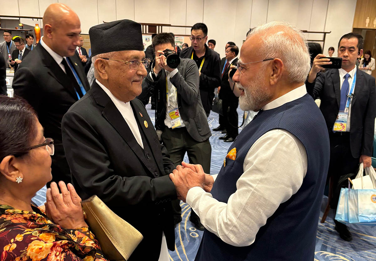 भारतीय प्रधानमन्त्री मोदीले सामाजिक सञ्जालमार्फत भेटको तस्बिर सार्वजनिक गरेका छन् । चिनियाँ राष्ट्रपति सी जिनपिङले शिखर सम्मेलनमा सहभागी मुलुकका लागि आयोजित स्वागत समारोहमा ओली र मोदीबिच भेट भएको हो ।