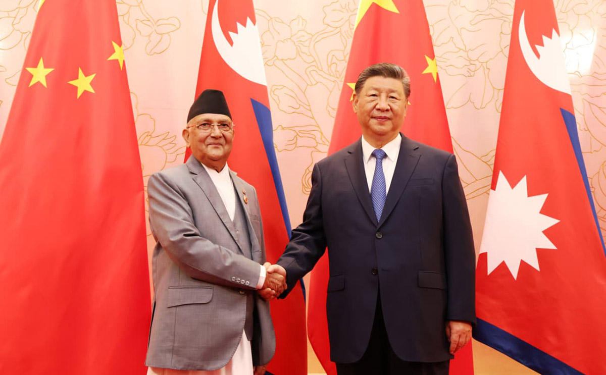 चीनका राष्ट्रपति सी चीनफिङसँग प्रधानमन्त्री ओलीको थियानजिनमा द्विपक्षीय भेटवार्ता भइसकेको छ ।