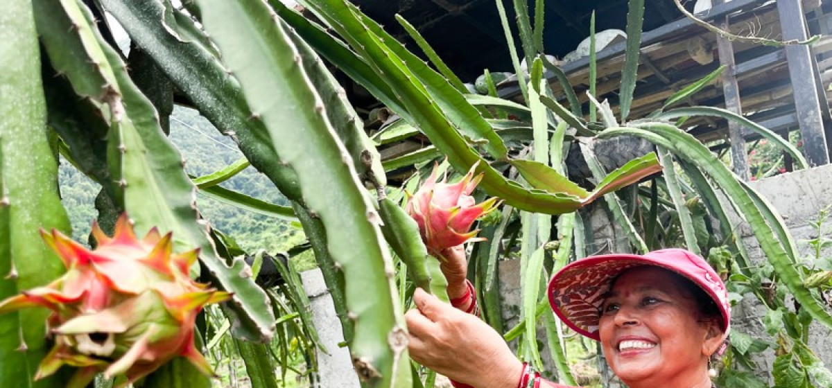 तनहुँ । तनहुँको व्यास नगरपालिका–२ दमौली निवासी कल्पना गौलीले व्यावसायिक रूपमा सिउँडीफल (ड्रागनफ्रुट) खेती गरेकी छिन्। उनले व्यास नगरपालिका–५ ढोडेनीमा सिउँडी फलको खेती गरेकी हुन्।