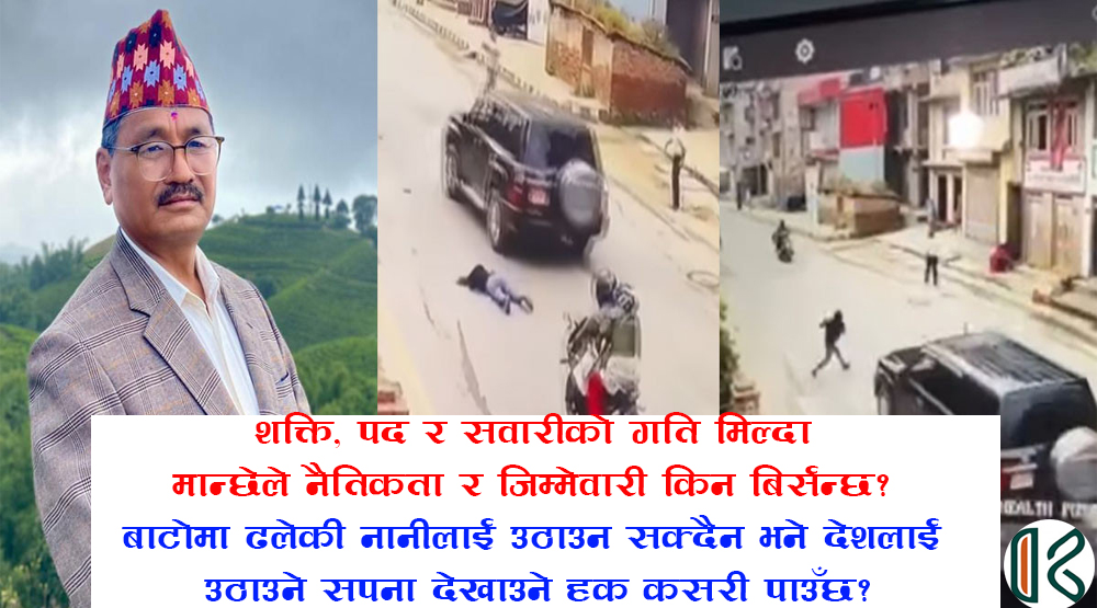 शक्ति, पद र सवारीको गति मिल्दा मान्छेले नैतिकता र जिम्मेवारी किन बिर्सन्छ? बाटोमा ढलेकी नानीलाई उठाउन सक्दैन भने देशलाई उठाउने सपना देखाउने हक कसरी पाउँछ?