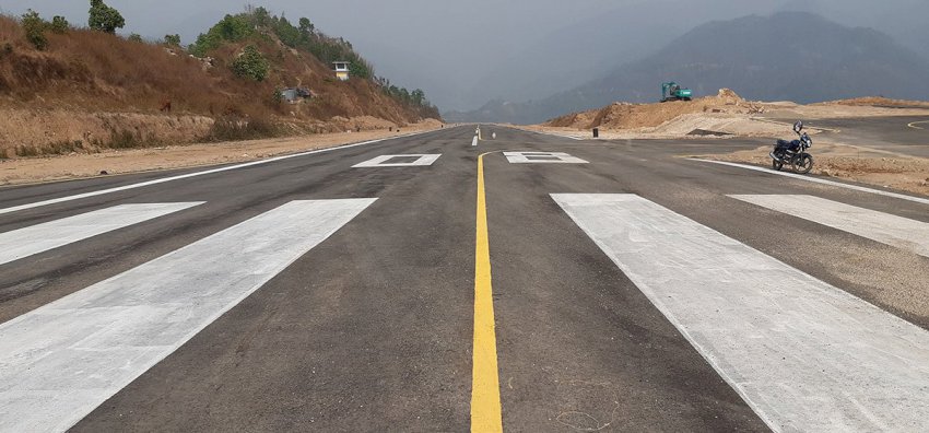 तीन सय २८ रोपनी क्षेत्रमा निर्माण भएको विमानस्थलका लागि २०५८ सालमा प्रक्रिया सुरु भएको थियो । विमानस्थलको ६ सय ७० मिटर लम्बाइ र २० मिटर चौडाइको धावनमार्ग कालोपत्रे भएको छ । तर स्थायी टर्मिनल भवन, पक्की पहुँचमार्ग, सुरक्षित तारबारलगायत संरचना अझै अधुरै छन् ।
