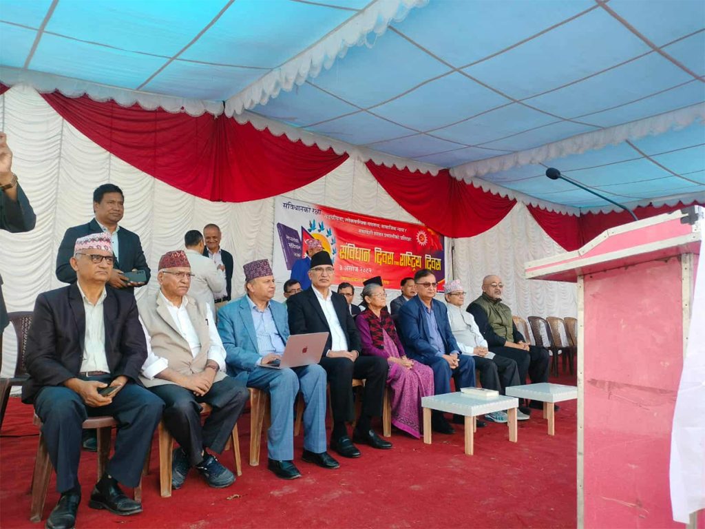 काठमाडौं । संविधान दिवसको अवसरमा नेकपा एमालेले शुक्रबार केन्द्रीय कार्यालय च्यासलमा विशेष कार्यक्रम आयोजना गर्यो । तर सो कार्यक्रममा पार्टी अध्यक्ष केपी शर्मा ओली भने अनुपस्थित रहे ।