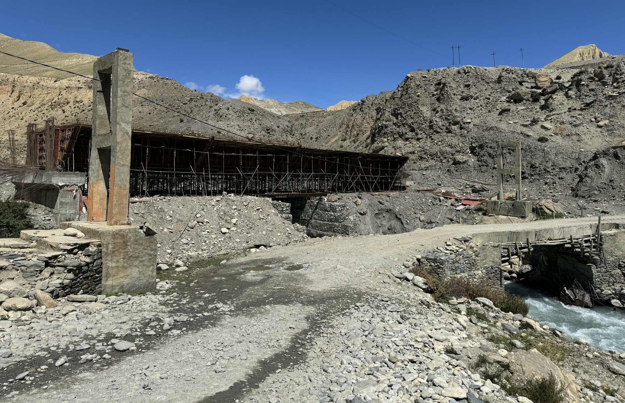 मुस्ताङ । उत्तर/दक्षिण व्यापारिक मार्ग विस्तारित आयोजनाअन्तर्गत कालीगण्डकी करिडोर (बेनी–जोमसोम–कोरला) सडक आयोजनामार्फत ठेक्का सम्झौता भएको मुस्ताङको लोघेकर दामोदरकुण्ड–२ घमी खोलामा निर्माणाधीन पक्की पुल अलपत्र परेको छ ।