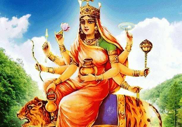 प्रत्येक वर्ष आश्विन शुक्ल चतुर्थी अर्थात् दुर्गा पक्षको चौथो दिन कुष्माण्डा देवीको विधिपूर्वक पूजाआराधना गर्ने शास्त्रीय विधि छ । आध्यात्मिक, आधिभौतिक र आधिदैविक यी तीन तापलाई कुष्मा भनिन्छ । नवदुर्गामध्येकी चौथो देवी कुष्माण्डाले शरणमा आएका भक्तको तीनै ताप हरिदिने भएकैले यो नामाकरण भएको बताइन्छ । कुष्माण्डाले सुराले भरिएका घडा तथा रगतयुक्त पात्र धारण गर्ने विभिन्न पुराणमा उल्लेख गरिएको छ ।