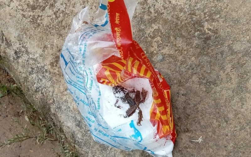 ‘बुवा बित्नुभएको थियो, उम्कने दिनमा आफन्तलाई खुवाउन भनी ल्याइएको नुनमा मरेको भ्यागुतो सुकेको अवस्थामा भेटिएको हो’ थापाले भने।