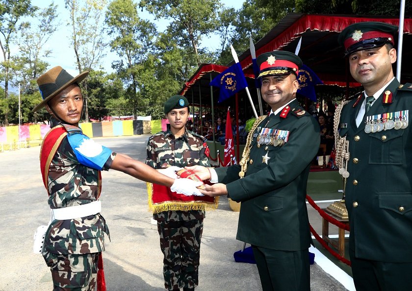 तालिम समापनका अवसरमा त्रिशूलीस्थित श्री नं १ सैन्य तालिम केन्द्रमा तालिम महानिर्देशक ध्रुवप्रकाश शाहलगायतका सैनिक अधिकृतले कवाज निरीक्षण गरी उत्कृष्ट शिक्षार्थीलाई पुरस्कार प्रदान गरे ।