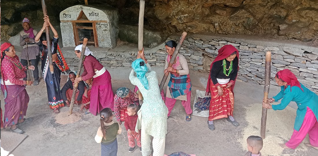 जुम्ला । आधुनिक उपकरण भित्रिएसँगै पछिल्लो समय दुर्गम पहाडी जिल्ला जुम्लामा धान कुट्ने ‘ओखल’ हराउँदै गएको छ ।
