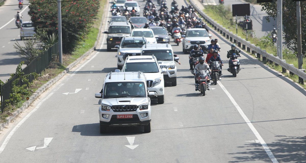 काठमाडौं । नेकपा (एमाले)का अध्यक्ष केपी शर्मा ओलीलाई गुण्डुबाट जावलाखेलसम्म स्कर्टिङ गरी पुर्याइएकाे छ । राष्ट्रिय युवा सङ्घले मोटरसाइकल स्कर्टिङ गरेर उनलाई जावलाखेलसम्म पुर्याइएकाे हाे ।