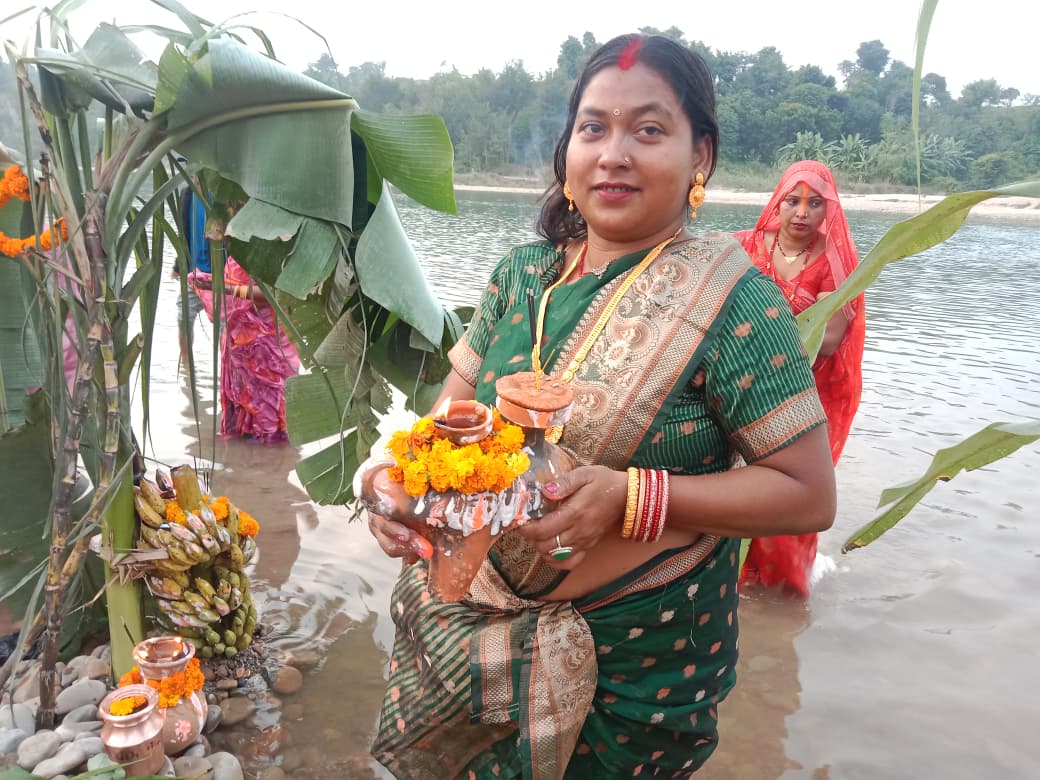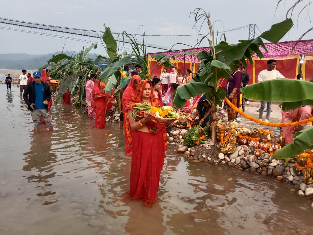 उदयपुर (कटारी) । उदयपुरकाे कटारी नगरपालिका-२ काे त्रिवेणी मुलघाटमा पहिलाेपटक छठ पूजाकाे आयाेजना गरिएकाे छ । गुराँस छठ पूजा समितिकाे आयाेजना एक विशेष कार्यक्रम गरी मनाइएकाे हाे ।