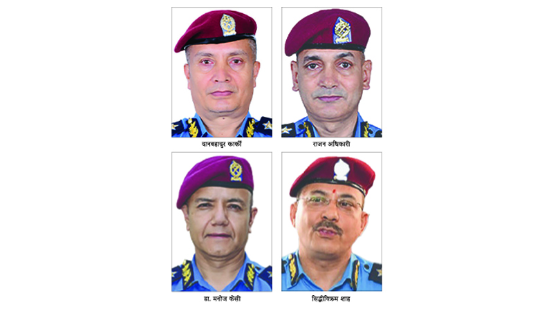 र, यौ दौडमा छन् प्रहरी अतिरिक्त महानिरीक्षक (एआईजी) दानबहादुर कार्की, राजन अधिकारी, डा. मनोजकुमार केसी र सिद्धीविक्रम शाह । कार्की, अधिकारी र डा. केसी १११औं टोलीका हुन् भने शाह राअविबाट प्रहरीमा स्थानान्तरण भएका हुन् । अर्काे कुरा, १११औं टोलीका तीन जना र राअविबाट स्थानान्तरण भएका शाहको टोलीबीच को सिनियर भन्ने विवाद पनि छ ।